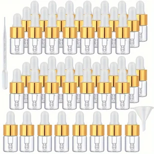 2ml Przezroczyste 50szt. Butelki z Zakraplaczem do Olejków Eterycznych 2ml Małe Przezroczyste Szklane Butelki z Zakraplaczem Perfum i Kosmetyków,