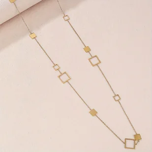 TEMU 1 szt. Damski Długi Naszyjnik z Kwadratowym Wzorem, Łańcuszek do Swetra, Prezent na Urodziny, Walentynki, Randkę, Biżuteria na Imprezy Taneczne,