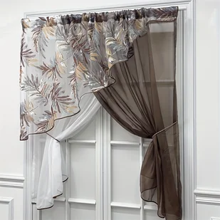 Elegancka Szara Zasłona z Półprzezroczystymi Liśćmi - Konstrukcja z Kieszenią na Drążek dla Łatwego Montażu, Przepuszczająca Światło Tiulowa Zasłona