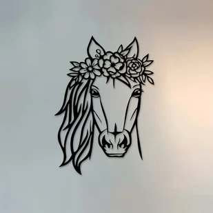 TEMU Metalowa Dekoracja Ścienna z Koniem i Kwiatami - Elegancka Ozdoba do Salonu, Biura, Kuchni i Baru na Halloween