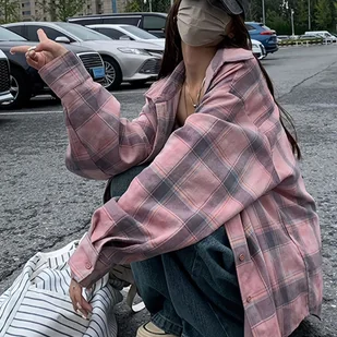 Koszula w kratę z guzikami z przodu, swobodna z długim rękawem na wiosnę i jesień, odzież damska