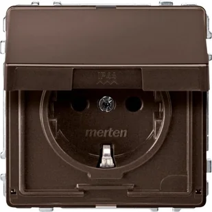Merten - Gniazdko Schuko z pokrywą na zawiasach, zaciski wtykowe, ochrona przed dotykiem, Aquadesign, MEG2310-7215, ciemna brazylia