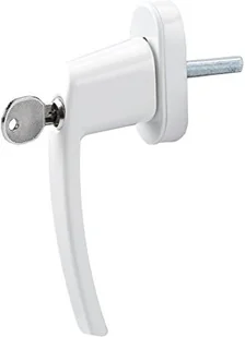Olympia FGS 100 zamykany uchwyt okienny z 2 kluczykami każdy. Zabezpieczenie okna z zamkiem kwadratowym 7 x 7 mm. Długość trzpienia 35 mm. Powlekany metal., biały