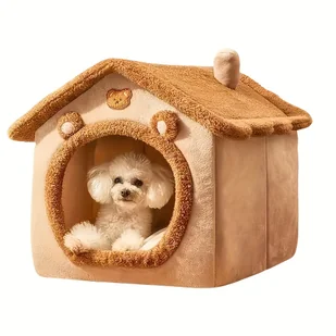 TEMU Przytulne Legowisko dla Kota - ZZmywalne i Odpinane, Miękka Poliestrowa Chatka dla Zwierząt na Zimowe Ciepło