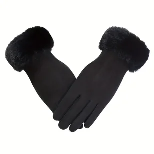 Stylowe Pluszowe Rękawiczki Mankietowe Eleganckie Grube, Ciepłe Rękawiczki Z Ekranem Dotykowym W Jednolitym Kolorze Jesienno-zimowe, Odporne Na Zimno