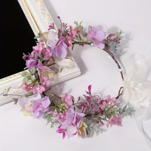 TEMU 1 szt. Czarująca Opaska z Wiankiem Lawendowym - Styl Wiejski, Poliester, Bez Zasilania, Bez Piór Idealna do Podróży, Studiów Fotograficznych i