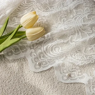 TEMU 1 szt. Elegancka Kurtyna w Stylu Francuskiego Wiejskiego z Koronką i Koralikami - Ogon do Salonu i Sypialni