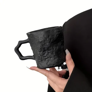 TEMU 1 szt. Unikatowy Czarny Kubek z Teksturą Kamienia z Uchwytem - Izolujący, Tylko Mycie Ręczne, Wszechstronny do Wody, Herbaty, Kawy lub Użytku