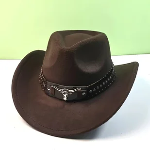 TEMU 1 szt. Zachodni Kapelusz Kowbojski z Paskiem z Głową Byka, Pleciony Pasek z PU Skóry, Prosty Kapelusz z Szerokim Rondem, Unisex, Prezent na