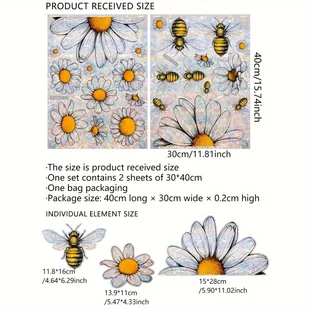 TEMU 2-pack Daisy & Bee Static Cling Window Film, 30x40cm, Dwustronny Wzór Zwierząt W Stylu Klasycznym, Wielokrotnego Użytku Dekoracyjne Naklejki