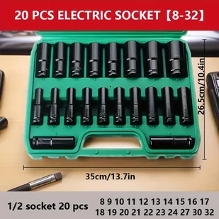 TEMU 20-częściowy zestaw narzędzi elektrycznych z adapterem do klucza udarowego - 1/2 cala 8-32 mm metryczne gniazda, trwała stal chromowo-wanadowa,