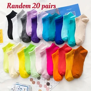 TEMU Losowy wybór 20 par skarpetek w jednolitych kolorach cukierkowych