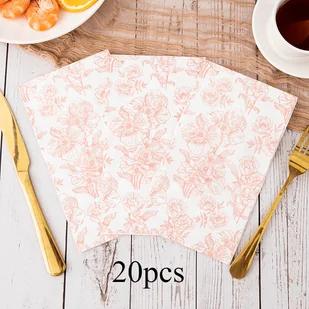 TEMU 20-pak kwiatowych serwetek papierowych, różowe paski dekoracyjne papierowe ręczniki do przyjęć, restauracji, uroczystości, jednorazowe arkusze