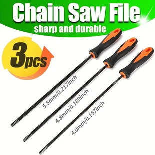 TEMU 3 Wysokiej jakości pilniki do pił łańcuchowych - Premiumowe okrągłe narzędzia do piłowania do pił łańcuchowych z ergonomicznymi uchwytami -