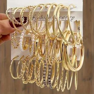TEMU 36-sztukowy zestaw kolczyków w stylu fashion dla kobiet - Elegancki i prosty styl z akcentami kryształków, konstrukcja z żelaza z końcówkami ze