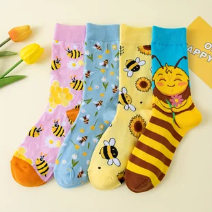 TEMU 4 pary mieszanych kolorów Bee skarpetki