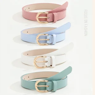 TEMU Zestaw 4 damskich pasków z klasyczną złotą klamrą, ręcznie wykonanych dla luksusowego i modnego wyglądu. Uniwersalny dodatek, który idealnie