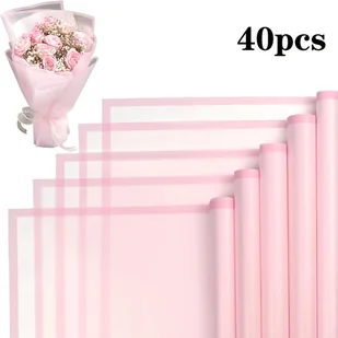 TEMU 40szt. Różowy do Pakowania z Kwiatowym Wzorem i Magicznymi Krawędziami - Wodoodporny, Półprzezroczysty, Arkusze do Bukietów dla Kwiaciarni i