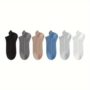 TEMU 6/12 Par Męskich Prostych Skarpetek Na Kostkę Z Solidną Wkładką, Cienka Siateczka Wygodne, Oddychające, Miękkie Skarpetki Pochłaniające Pot Do