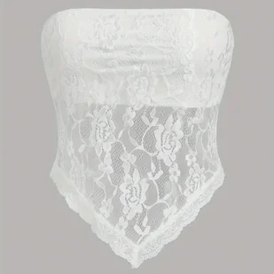 TEMU Popularny Damski Top z Koronkowym Panelu w Jednolitym Kolorze, Dwuwarstwowy