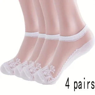 TEMU Cztery pary letnich, oddychających, cienkich, niewidocznych pończoch, niskich, wygodnych i lekkich, przezroczystych i estetycznie przyjemnych.