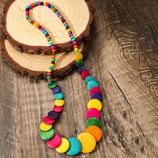 TEMU Ręcznie Robiona Drewniana Koralikowa Naszyjnik w Stylu Boho w Różnych Kolorach
