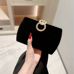 TEMU Elegancka Czarna Aksamitna Wieczorowa Kopertówka z Klamrą z Cyrkoniami – Damska Formalna Torebka na Kolacje, Bal, i Śluby, Kopertówka Ślubna