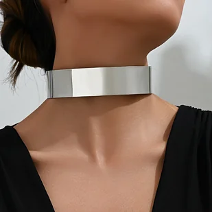 TEMU Elegancki minimalistyczny gładki naszyjnik choker geometryczny dla kobiet, szykowny prosty styl, regulowany łańcuszek, wykończenie w kolorze