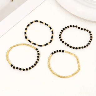 TEMU Zestaw bransoletek 4 szt., Elegancki zestaw bransoletek damskich z czarnych złotych koralików ryżowych, Dodatki do biżuterii na przyjęcia