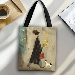 TEMU + Elementy Modne 1 Szt., Abstrakcyjne Sztuki, Torba Z Tkaniny Z Wzorem Dla Kobiet I Psów, Idealna Do Zakupów, Codziennego Użytku, Prezentów Na