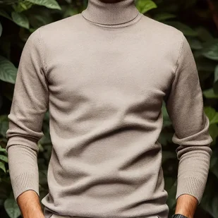 TEMU Męski Sweter Golfowy w Jednolitym Kolorze - Miękki Sweter z Dzianiny na Jesień/Zimę, z Długim Rękawem