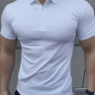 TEMU Męskie koszulki sportowe - 100% poliestru, styl na co dzień, średni rozciągliwość, jednokolorowe, letnia roku, detal z guzikami, obcisła,
