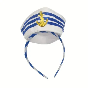 TEMU Opaski z kotwicą - Dekoracje na imprezę dla kobiet - Festiwalowe opaski w marykim niebieskim i czerwonym pasie z złotymi kotwicami - Idealne na