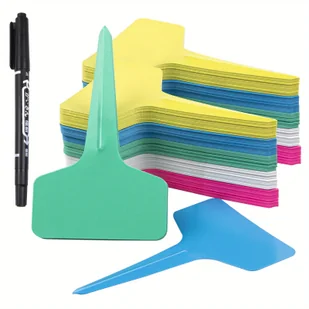 TEMU -pakietowe markery do roślin ogrodowych w kształcie litery T z permanentnym markerem, wielokrotnego użytku, wodoodporne etykiety do szkółek,