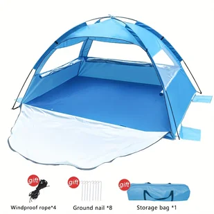 TEMU Plażowy Namiot Słoneczny dla 2-3 Osób, Łatwy w Montażu Namiot Kempingowy do Wędkowania z Rozsuwanym Drzwiami i 3 Oknami z Siatki, Automatyczna