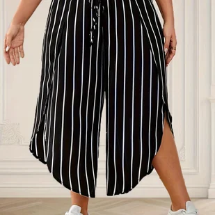 TEMU Spodnie w paski dla puszystych, luźne, szerokie spodnie o wysokim stanie na wiosnę i , odzież dla puszystych kobiet