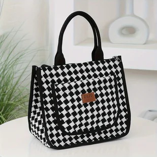 TEMU DLIU Modna Torba na Ramię z Nylonu w Kratę dla Kobiet - Składana z Zamkiem i Kieszenią na Przodzie oraz Stałymi Paskami do Noszenia do Pracy i