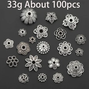 TEMU [100 Sztuk Pokrywek Na Koraliki] 100 Sztuk Pokrywek Na Koraliki Ze Stali Aluminiowej, Wzory Płatków Kwiatów, Pokrywki Na Biżuterię Do