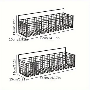TEMU Żelazny 2-pakowy kosz do przechowywania montowany na ścianie, bez dziurkowania, metalowy organizer do zawieszania do łazienki i kuchni