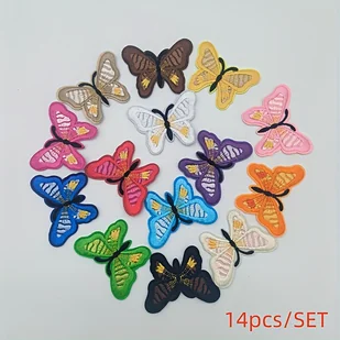 TEMU Zestaw 14 sztuk - 6,7cm naszywki z motylami - naszywki do prasowania na ubrania - niezbędne naszywki do odzieży - Stylowe naszywki z haftem: