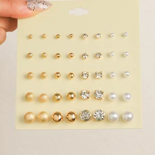 TEMU Zestaw 20 par minimalistycznych, luksusowych, wieloelementowych kolczyków sztyftów, lekki , ekskluzywny prezent na wakacje, damskie kolczyki do