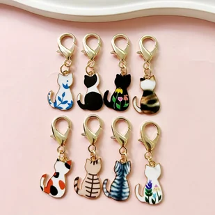 TEMU Zestaw 8 Breloczków z Nadrukiem Uroczych Kotów - Stop Cynku, Modny Dodatek dla Mężczyzn i Studentów