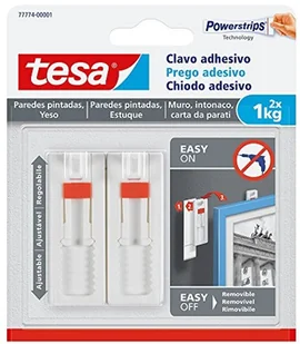 tesa TE77774-00001-00 SMS Clavo Adhesivo Ajustable hasta 1 kg para Pared Pintada, standardowa, 2 sztuki