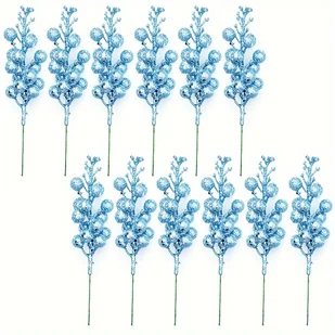 Zestaw 12 elementów świątecznych z brokatem - Złote gałązki, kwiaty i ozdoby choinkowe na przyjęcia świąteczne i dekoracje girlandowe