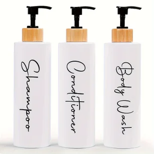 TEMU Zestaw 3 dozowników do szamponu i odżywki w kolorze czarno-białym (27 uncji) - Nowoczesne, napełnialne butelki z pompką do szamponu pod prysznic