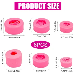 TEMU Zestaw 6 form silikonowych z motywem kwiatowym - Piwonia i Róża do świec DIY, gliny, ręcznie robionych dzieł