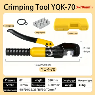 TEMU MYOUSHO Narzędzie do Zgniatania Hydraulicznego z 8 Matrycami - Bez Zasilania, Głowica w Kształcie Litery C, Obrót o 180°, Uchwyt z Powłoką