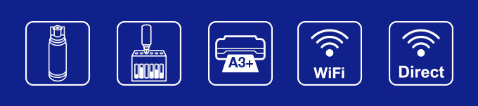 Zintegrowany system stałego zasilania w atrament umożliwia ekonomiczne drukowanie zdjęć. Zbiorniki na atrament o dużej pojemności wykorzystujący butelki z atramentem o pojemności 70 ml pozwala wydrukować do 2100 kolorowych zdjęć wysokiej jakości o wymiarach 10 x 15 cm przy użyciu zamiennego zestawu butelek z atramentem1. Napełnianie atramentem jest łatwe i szybkie. Niekapiące butelki z systemem key-lock zapobiegają pomyłce przy użyciu niewłaściwego koloru do zbiornika.